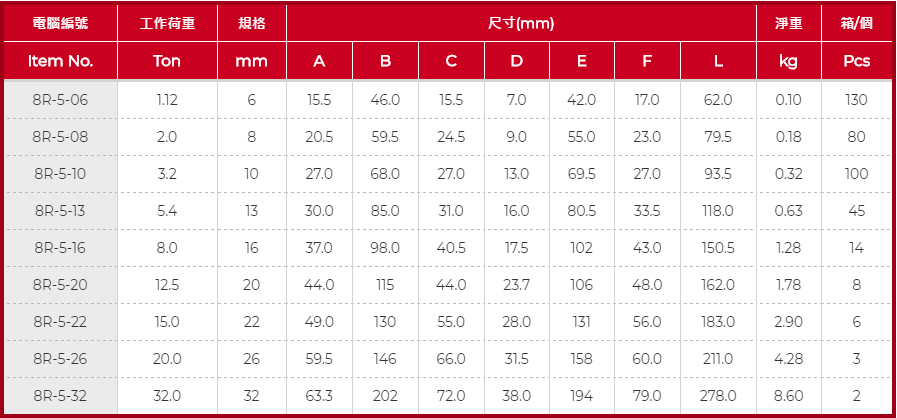 產(chǎn)品特性: 應用於連接合金鏈條吊裝的配件能輕鬆安裝組合產(chǎn)品上面印製吊裝載荷量,PASAK和WLL的浮雕標誌材質(zhì):高強度鍛造合金鋼結構:熱處理高溫處理(淬火,回火)安全係數:4:1
